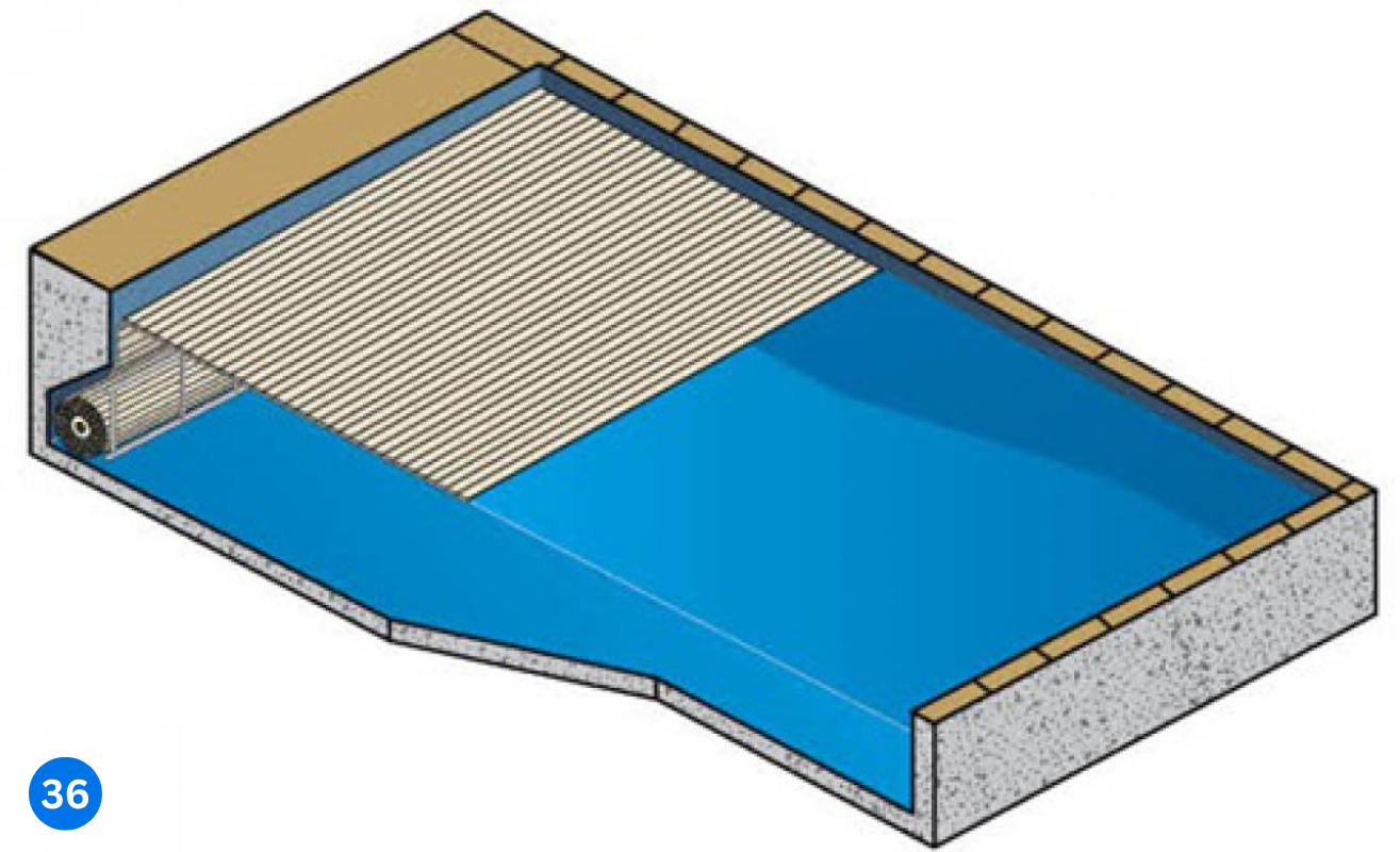 • Mechanism is hidden in wet pit (cave) in pool wall